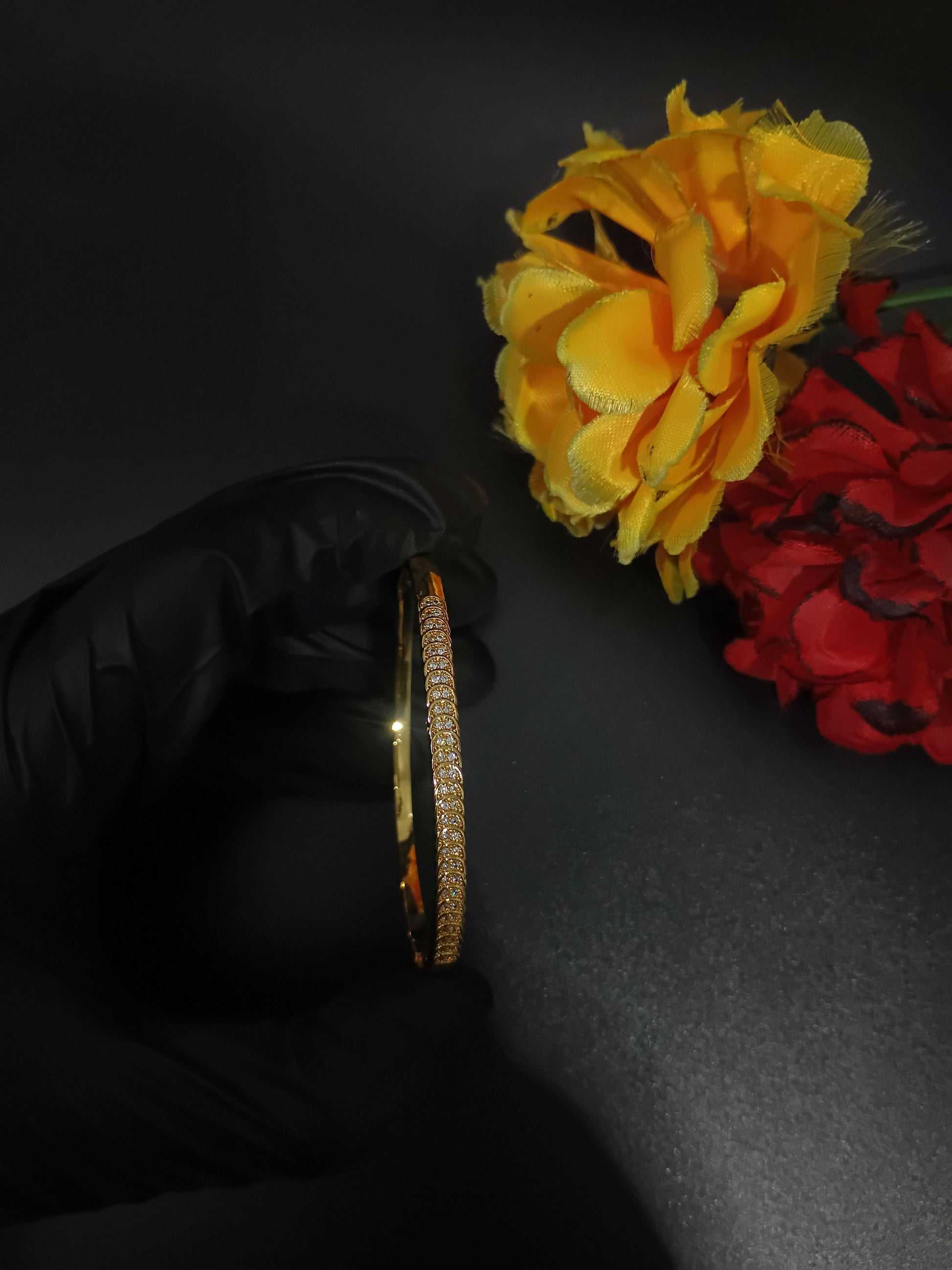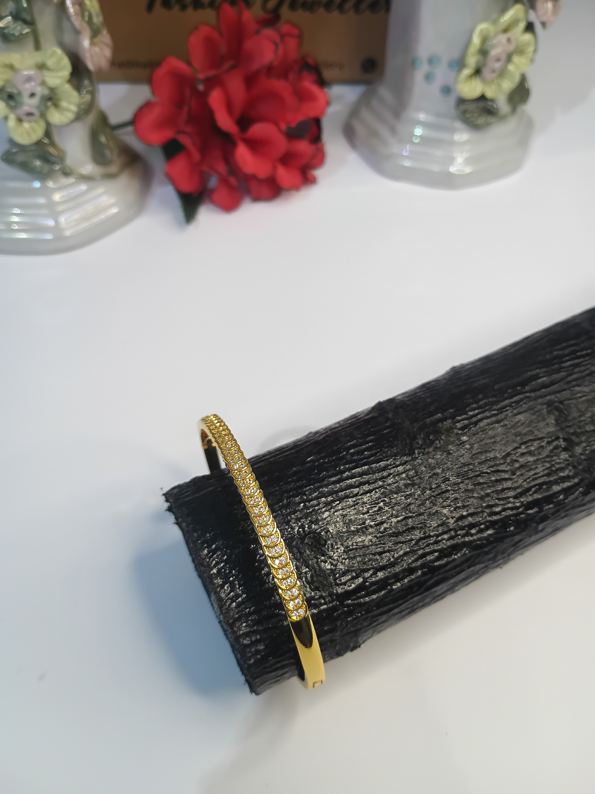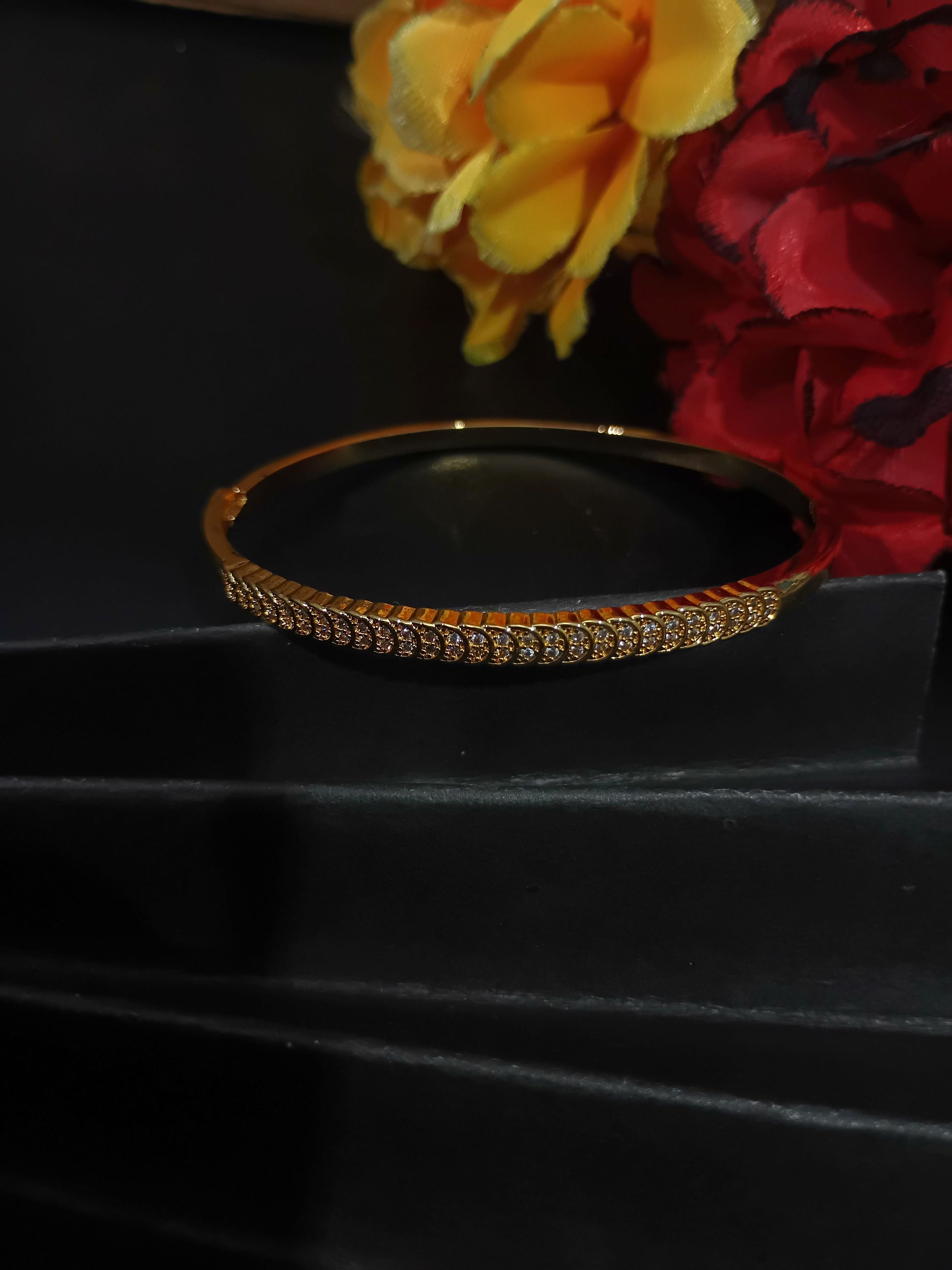 A sleek gold-finish bracelet, fully studded with sparkling CZ stones. Easy to wear with its openable design—perfect for both daily elegance and festive looks