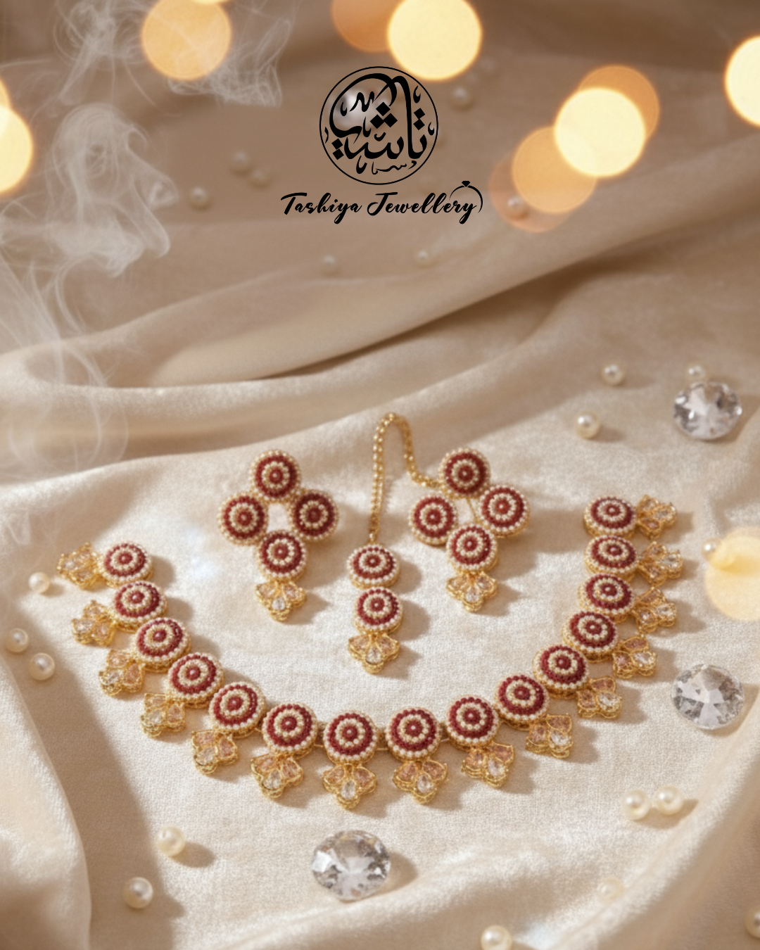 Your treasure awaits: Elegant necklace set with earrings and teeka (headpiece).