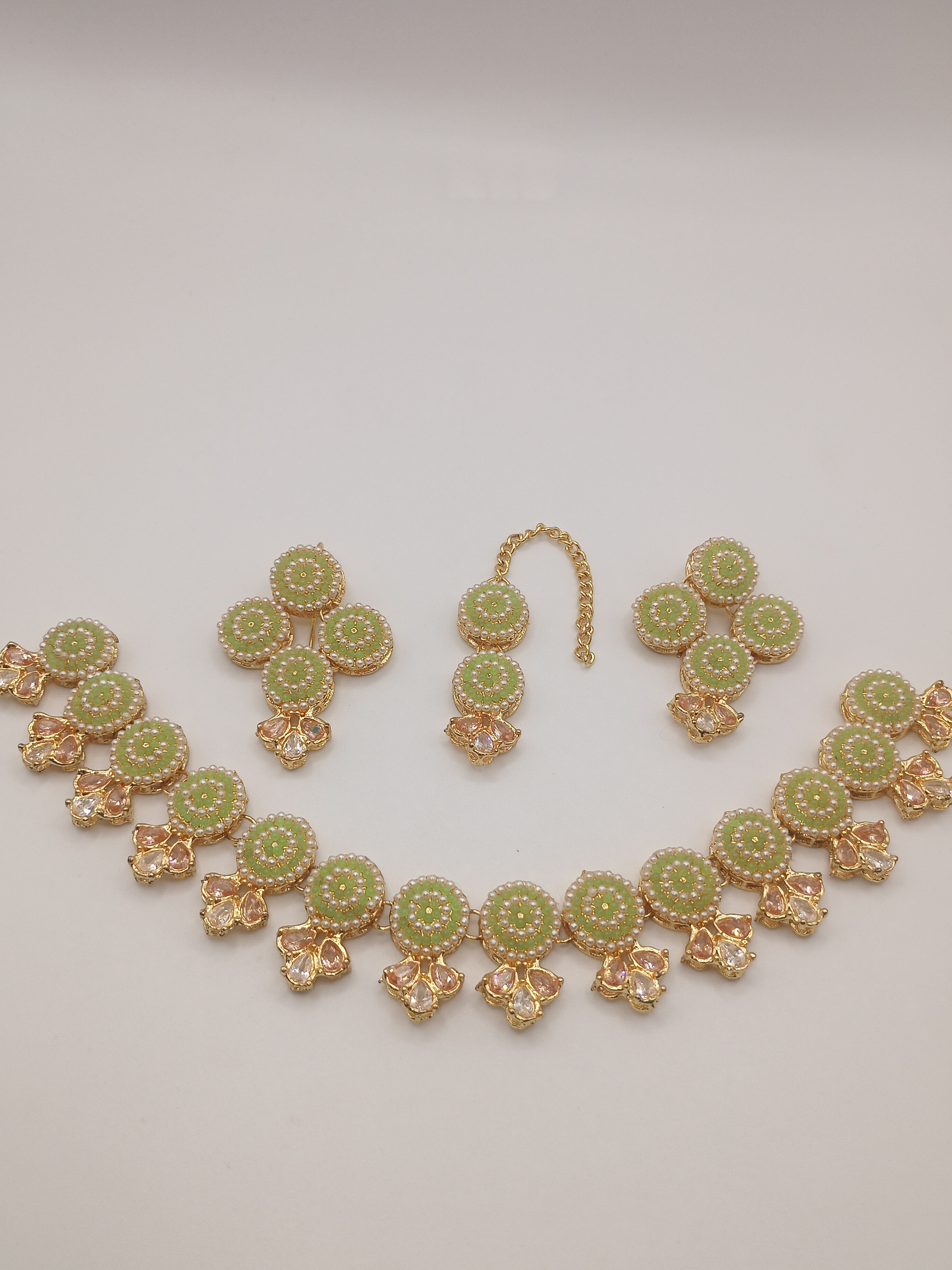Your treasure awaits: Elegant necklace set with earrings and teeka (headpiece).