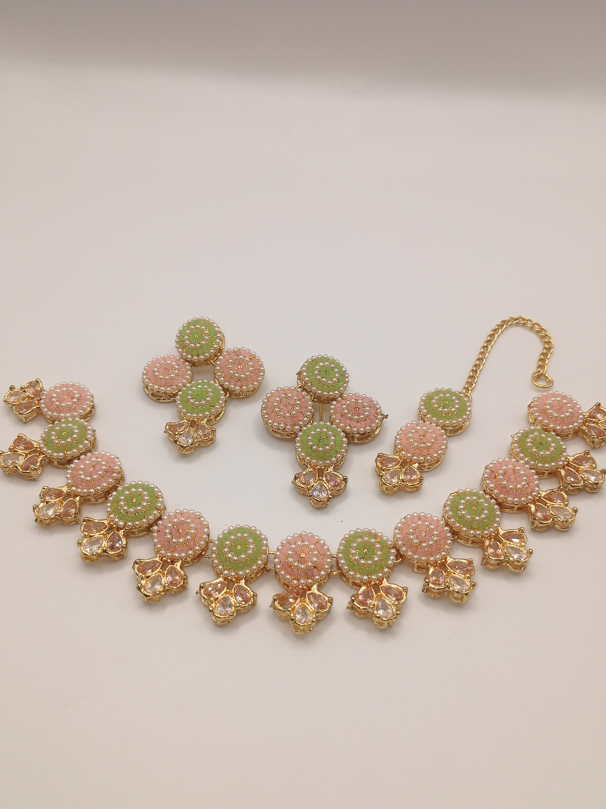 Your treasure awaits: Elegant necklace set with earrings and teeka (headpiece).